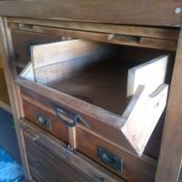 vecchio mobile archivio a cassetti restaurato diviso in 4 parti con serrande scorrevoli chiudibili a chiave. largo 136 cm, alto 145 cm, profondo 60 cm.